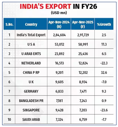 Couple of weeks ago India signed $3 bn LNG agreement with UAE. Under the new deal, Abu Dhabi state oil firm ADNOC will supply LNG of up to $3 billion for a period of 10 years, starting 2028, to India’s state- owned Hindustan Petroleum Corporation. Trade between India and UAE touched $100 billion in fiscal year 2025. Both countries signed the Comprehensive Economic Partnership Agreement in 2022. The trade Partners mutually agreed to double bilateral trade to $200 billion by 2032. This agreement was aimed at diversifying India’s trade, following the imposition of tariffs by the U.S. on its exports.