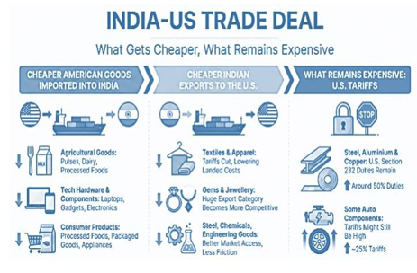 Under the new arrangement, the US has withdrawn the punitive duty linked to Russian oil imports and lowered the remaining reciprocal tariff, bringing the overall rate down to 18%. In effect, therefore, the tariff stands at 18%. Made-In-India products will now attract only 18% tariff. The revised rate represents a significant easing of trade pressure after months of elevated duties on Indian exports.